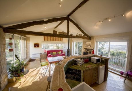 Situé sur un joli coteau, ce gite lumineux et chaleureux avec piscine offre une très belle belle vue sur les vignes et les petits bois environnants.