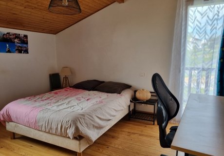 La maison se compose d'une cuisine indépendante, une salle à manger salon qui donne sur la terrasse, 3 chambres et un garage. J'habite en campagne sur une colline qui permet d'avoir de belles vues. L'environnement est très calme.