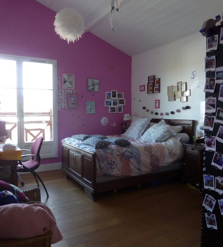 . la chambre de notre fille Xantiana avec un lit en 90 (possibilité de tirer pour en faire deux lits de 90 collés)
