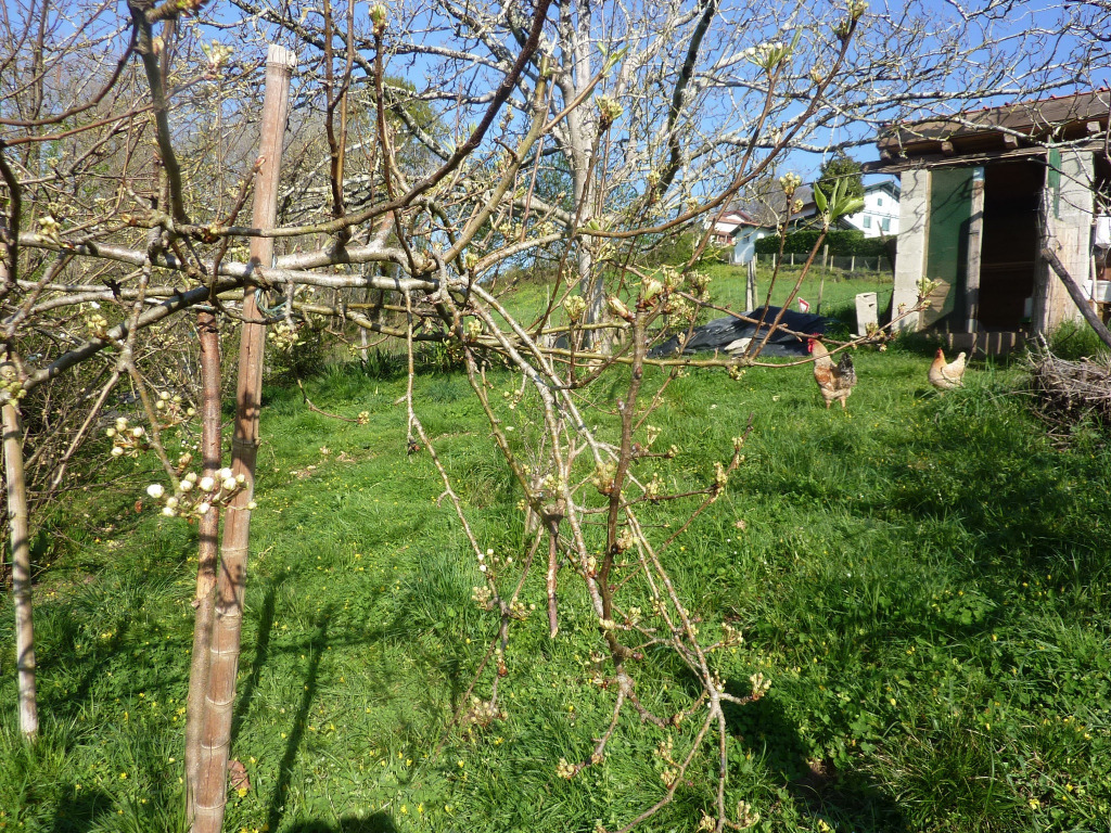 Un grand potager, des poules et un chat