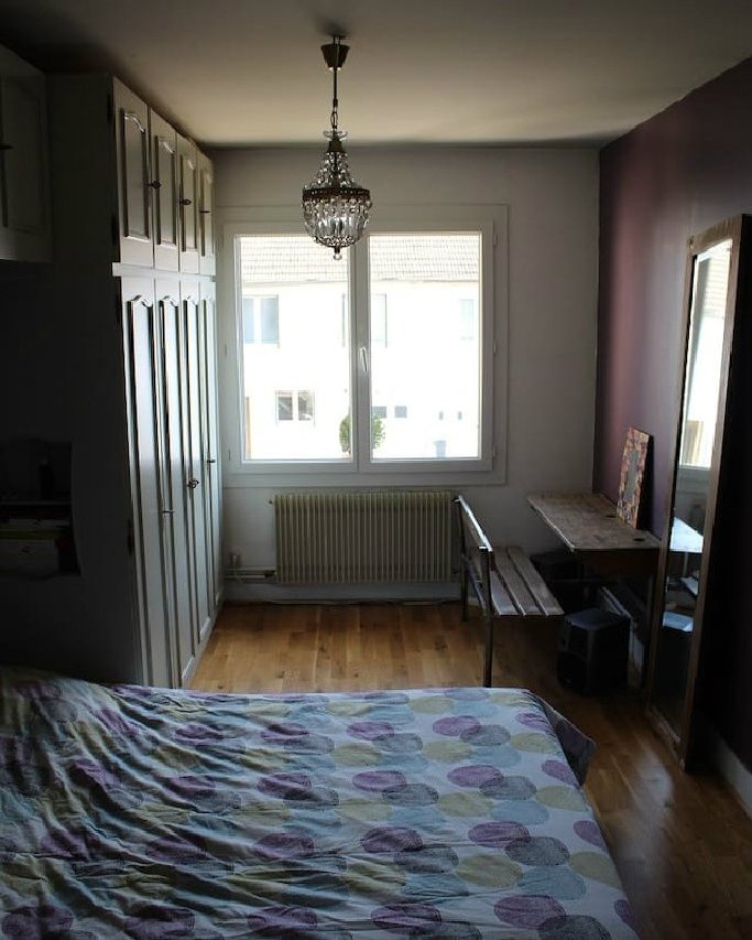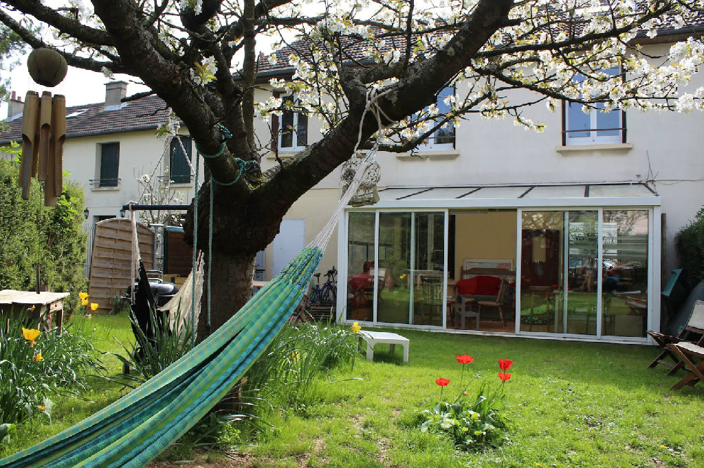 5 chambres dont 3 lits doubles, deux lits simples (plus deux vrais matelas au sol si besoin). Salle, salon et véranda. Jardin ombragé donnant sur un parc.