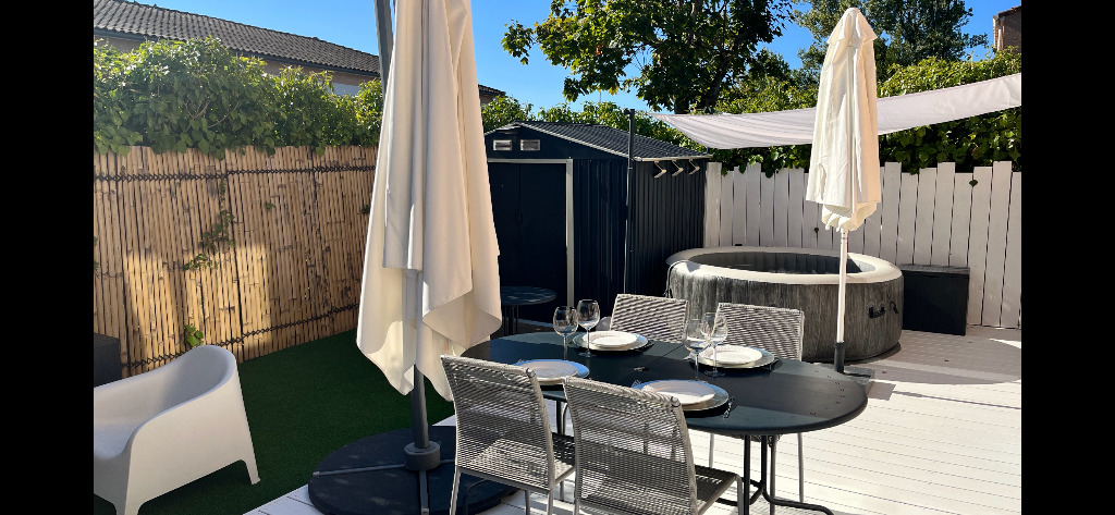 Agréable et lumineuse maison 5 pièces bien aménagés avec jardin située à 6 km de Toulouse Centre. Toutes les commodités sont à 2 minutes de la maison (boulangerie, boucher, poissonnier, la poste, fleuriste…). Entrée desservant cuisine et salon, baie vitrée ouvrant sur le jardin exposition Sud Est. 3 chambres dont une avec 1 lit 160cm et les 2 autres à l’étage. Télévision, Internet, radio CD, cuisine équipée four / micro-onde / lave vaisselle /frigo-congélateur / grille-pain / bouilloire / cafetière / lave-linge. Salle de bain : lavabo / douche / baignoire / WC. Chauffage au gaz. Animal Non Admis. Fumeur Non Autorisé dans la maison. Parking devant la maison.