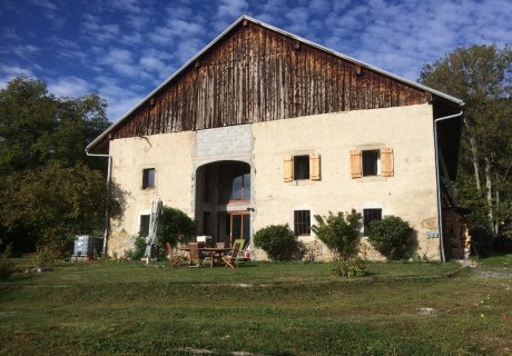 Ancienne ferme, mitoyenne, rénovée depuis peu de temps, avec un jardin, potager et une terrasse en bois, au milieu des champs