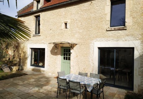 Notre maison fait environ 200 m2 sur un terrain de 1500 m 2 de terrain arboré. C'est une maison ancienne en pierres de CAEN que nous avons rénovée . L'environnement est très calme, assez rural ,pourtant nous sommes à moins de 10 mn du centre ville de Caen .Des promenades sont accessibles au départ de la maison ,que ce soit à pied ou à vélo .Le bord de mer est à une quinzaine de minutes en voiture ou en bus ,et le musée du Mémorial pour la paix à 2 km .