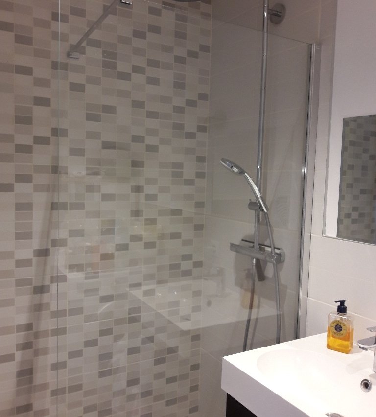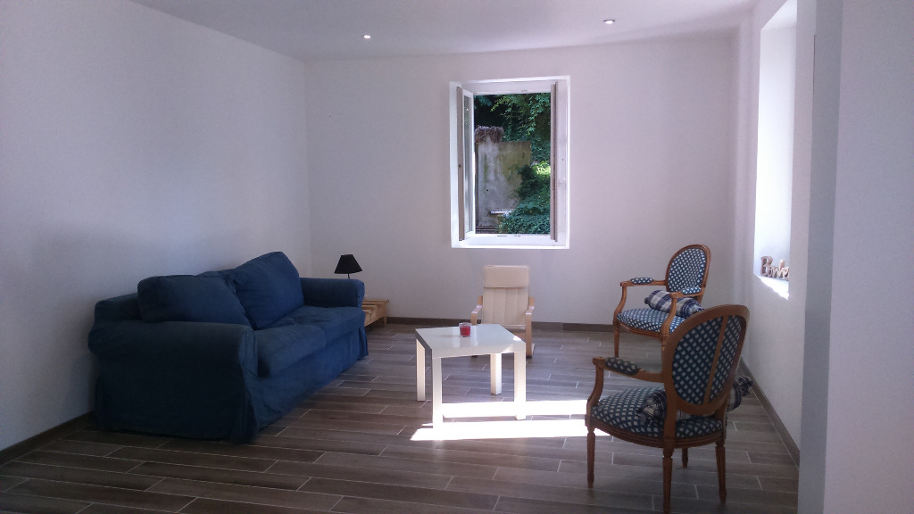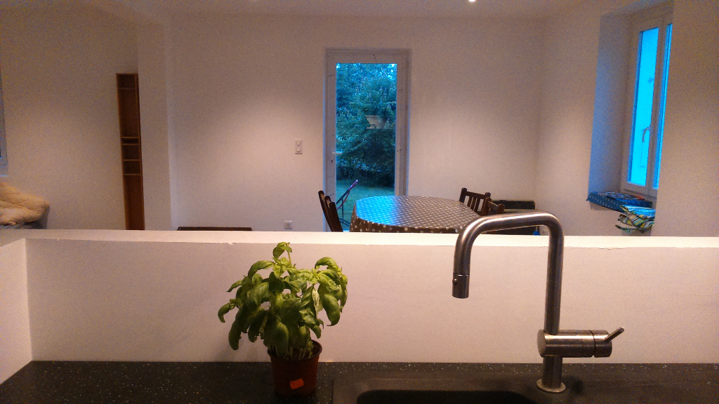 En rez de chaussée avec accès au jardin, avec une chambre (lit double en 140 cm), une salle de bain, et un canapé lit dans le séjour, une cuisine ouverte sur le séjour.