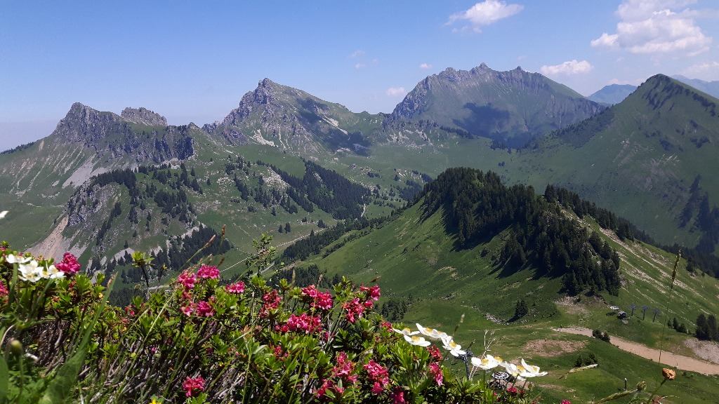 Cadre bucolique avec vue panoramique sur les massifs environnants (Bargy, Fiz, Mont Blanc, Môle).